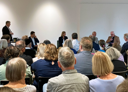 führte das Kulturbündnis Lünen, in dem unser Förderverein auch Mitglied ist, eine Podiumsdiskussion mit den Bürgermeister-Kandidat:innen Andreas Dahlke (GFL), Martina Förster-Teutenberg (SPD), Dr. Christian Klicki (CDU). Moderiert wurde die Gesprächsrunde von Jürgen Larys (Sprecher Kulturbündnis) und Horst Müller-Baß (Vorsitzender Förderverein Kunst und Kultur). Am Donnerstag, 28. August 2025, 19 Uhr nahmen rund 120 Besucher an der Veranstaltung im Museum der Stadt Lünen teil.